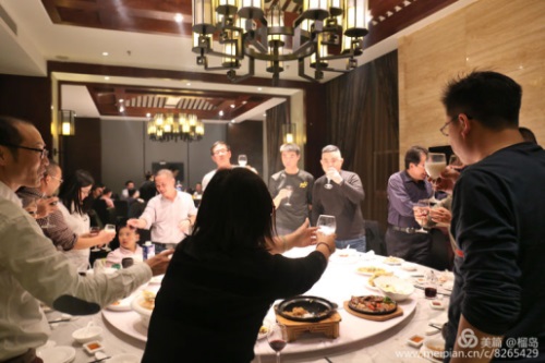 下榻玉環大酒店后,晚餐在玉環東風大酒店進行,集團公司及子公司管理干部一起舉杯慶祝大家有幸歡聚在玉環,至表祝福之情義。